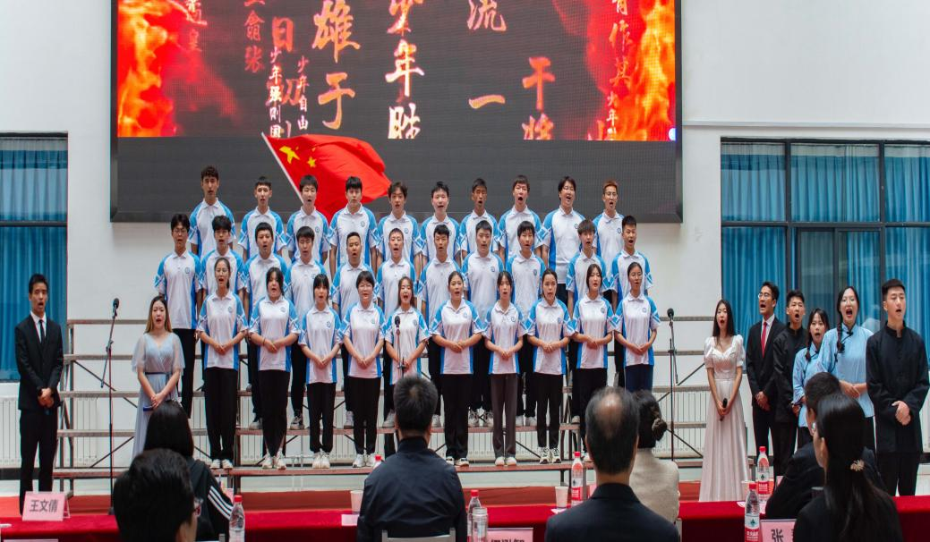 决赛现场,伴随着背景音乐,同学们精神抖擞,声音时而婉转、悠扬,时而铿锵、激昂,赢得阵阵掌声。同时,评委们本着公平公正的原则进行现场打分。最终,公司22建筑工程1班(辅导员程伊老师)获得二等奖,22铁道运管1班(辅导员杨小娟老师)和22铁道运管2班(辅导员汪思池老师)获得三等奖。学校领导对获奖队伍代表及指导老师进行颁奖,比赛圆满结束。