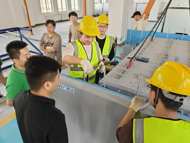 为保证我省参赛选手顺利参加2024年全国职业院校技能大赛高职组“GZ008装配式建筑智能建造”赛项,金年会特邀广联达科技股份有限公司技术指导老师孟海东于2024年5月13日-5月14日在行知楼南实训中心开展本赛项构件吊装技能实操培训工作。