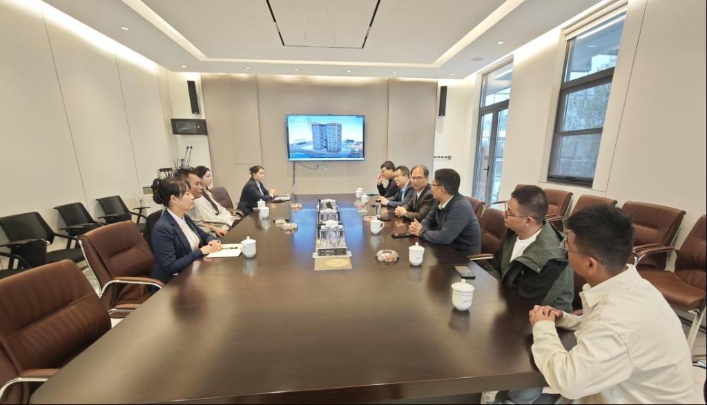 参观结束后,伊逊智一行与公司管理层围绕装配式建筑智能建造技术领域进行了深入交流。与会人员一同观看了钢构建筑智能建造机器人系统演示视频,杜学军总经理介绍了该机器人系统的主要功能及研发进展,并提出了该系统目前尚需解决的部分难题。该系统是智能控制与装配式建筑的高度融合,对人才要求极高,既需要精通智能控制,又需要精通建筑装配式建筑。这一系统的研发对今后建筑的施工将产生深远影响。伊逊智谈到,公司管理层目光长远,高瞻远瞩,能在当下房地产下行压力较大的时候,精准捕捉房地产领域的发展趋势与技术变革尤其难能可贵,陕西机电职院在智能制造领域,装配式建筑领域,BIM技术领域已深耕多年,校企双方可以围绕这一产业共同开展科技攻关,人才培养,充分利用好宝鸡市政府对我市重大科技项目的经费支持,真真正正创新一批科技成果,培养一批科技人才,为宝鸡市经济和校企双方的高质量发展持续赋能。