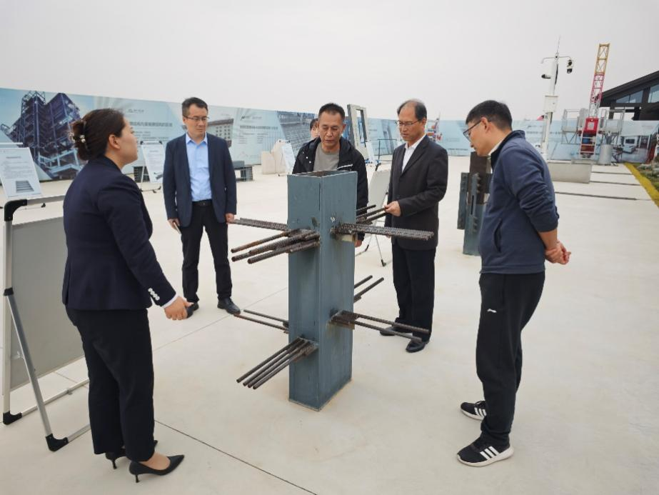 在施工现场工艺工法观摩过程中,现场工作人员详细介绍了蟠龙·观山堂项目的建设情况和工艺工法,包括采用的装配式钢结构体系、绿色建筑材料的应用、施工过程中的安全措施等方面。伊逊智一行认真聆听了现场工作人员钢结构在防火性能,防腐蚀性能,高强度连接,墙窗一体化建造等方面的先进做法,对企业在装配式建筑应用的新工艺,新材料,新工法大为赞赏,给予企业在房地产领域的科技投入和技术积累高度评价。