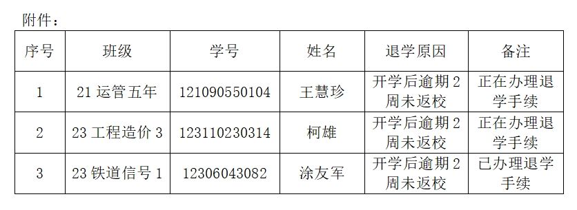 请王慧珍等 3 名同学收到本公告后立即与所在二级公司、辅导员联系,领取书面退学决定书;对于不主动领取或联系困难的员工,自本公告发布之日起满15日,即视为送达。