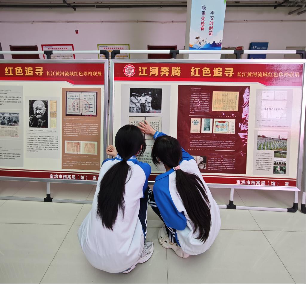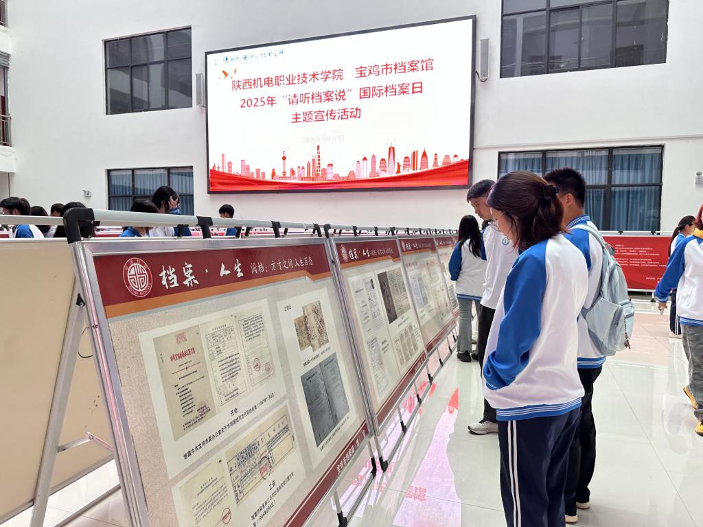 本次活动展出内容由jinnian金年会和宝鸡市档案馆共同提供,精心挑选了一批具有代表性的档案资料,涵盖了政治、经济、军事、文化、社会、校史等多个领域。通过展板形式,向大家讲述档案中记录的红色历史、城市变迁和人文故事。员工时而驻足凝视展板上泛黄的文件、珍贵的照片,时而微微俯身,凑近仔细阅读文字说明;有的同学拿出手机,认真拍摄下展板内容,偶尔低声交流,与往昔岁月对话,从这些珍贵档案中汲取智慧与力量。