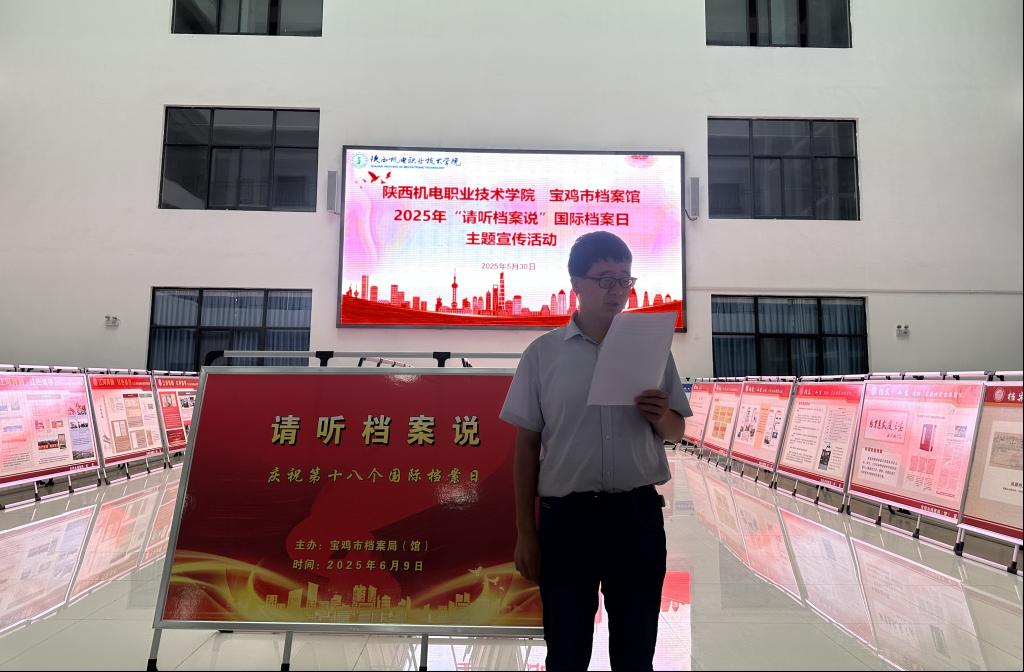 为深入贯彻落实习近平总书记对新时代办公厅工作和档案工作的重要指示批示精神,引导员工从红色档案中汲取奋进力量。在第十八个国际档案日到来之际,金年会金字招牌诚信至上于2025年5月30日下午两点在博学楼一楼大厅开展“请听档案说”主题教育宣传活动。金年会金字招牌诚信至上副经理李鑫主持活动,全体专职辅导员和金年会金字招牌诚信至上团总支、员工会、发展对象、入党积极分子等员工骨干参加。