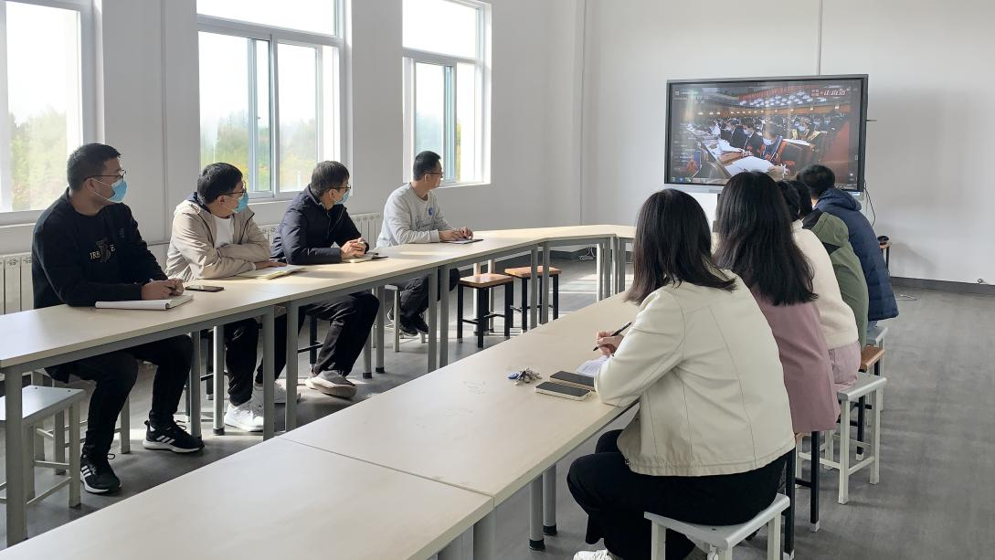 上午10时,金年会金字招牌诚信至上组织在蟠龙校区的教师集体在行知楼二楼会议室观看,其余教师纷纷通过电视、手机等方式观看党的二十大开幕会直播盛况。