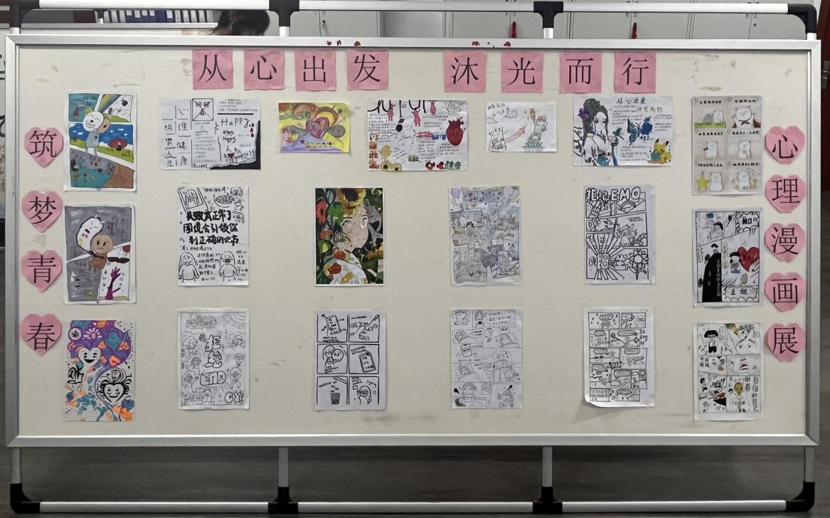 这些漫画作品包含单幅漫画、连环画等多种形式,作品将心理健康意识和心理健康水平以形象生动的艺术形式展示出来,反映了老员工对自我、对人际关系及对心理问题调适等的理解与感悟,同学们从漫画作品中体验到了心灵健康的美。