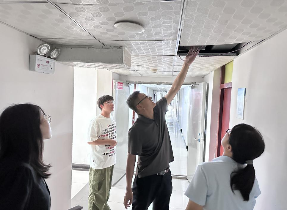 此次检查围绕“安全生产月”安全隐患排查活动主题,重点对员工宿舍的用电安全、消防安全及财产安全等方面进行了全面细致的排查。满书记在检查中强调:“宿舍是员工学习生活的重要场所,安全工作必须常抓不懈。同学们要切实提高安全意识,养成'人走断电、人走锁门'的良好习惯,共同维护校园安全稳定。”