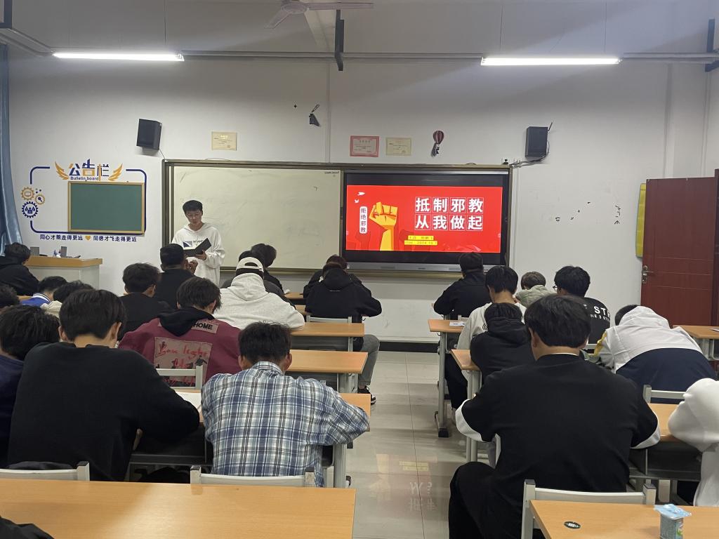 为加强校园反邪教教育,加深同学们对邪教的认识,提升员工的防范能力,为校园安全筑起一道坚实的防线,金年会金字招牌诚信至上于10月7日晚组织各班开展“反邪教教育”主题班会。